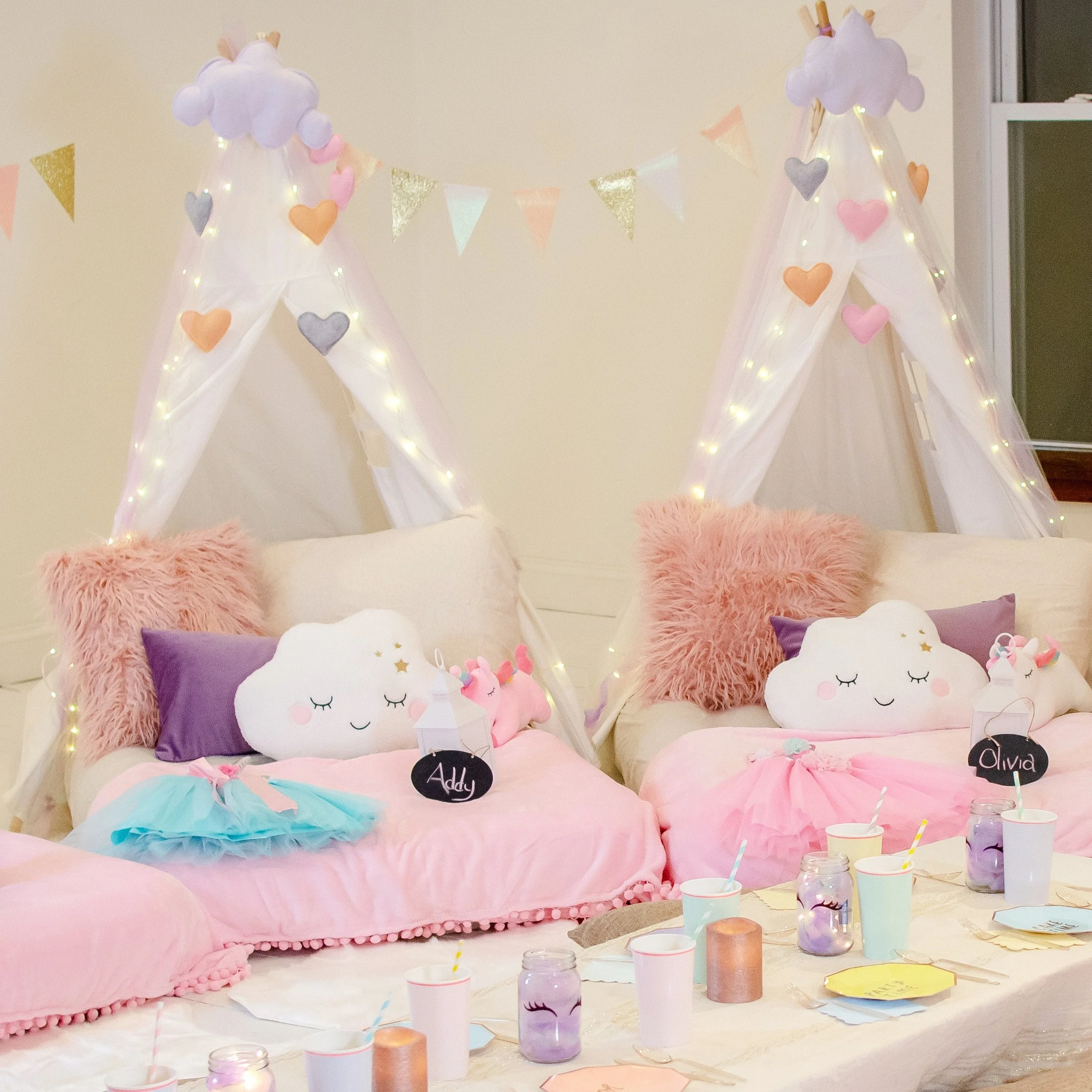A customized girly sleepover full of sparkle, lace and enchantment! ✨ They brought the laughter and unforgettable memories — I just set the scene!